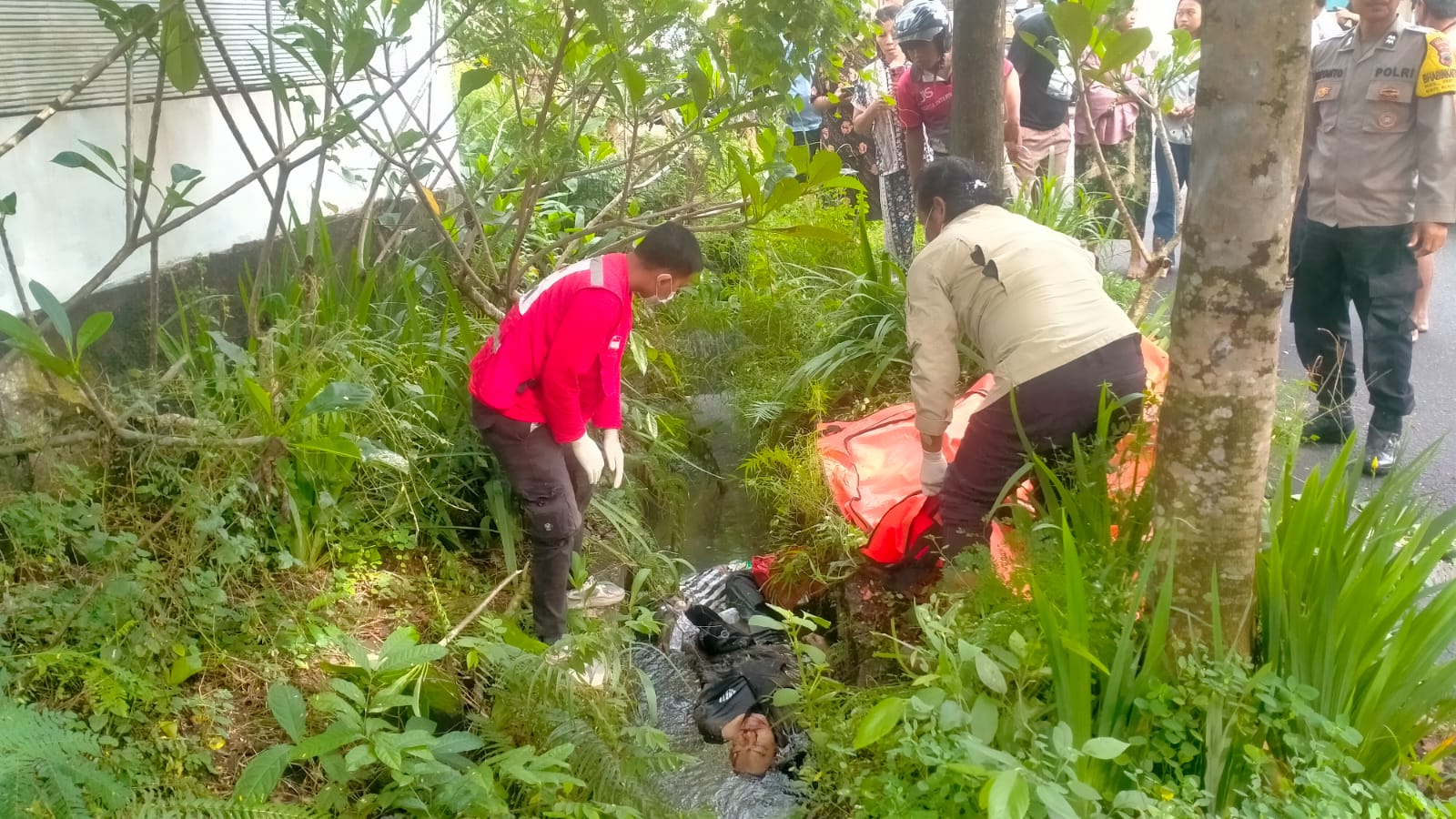 Warga setempat, Sadino mengatakan kejadian diketahui sekitar pukul 06.30 WIB. Ada tukang ojek online memberitahu dirinya jika ada motor di parit.