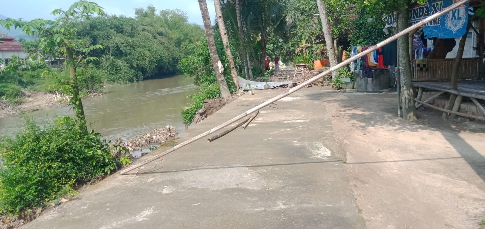 “Ada rumpun bambu sehingga menghalangi banjir sehingga kena tanggul. Jika tidak segera ditangani khawatirnya sayap jembatan besar juga kena,” Ungkapnya.
