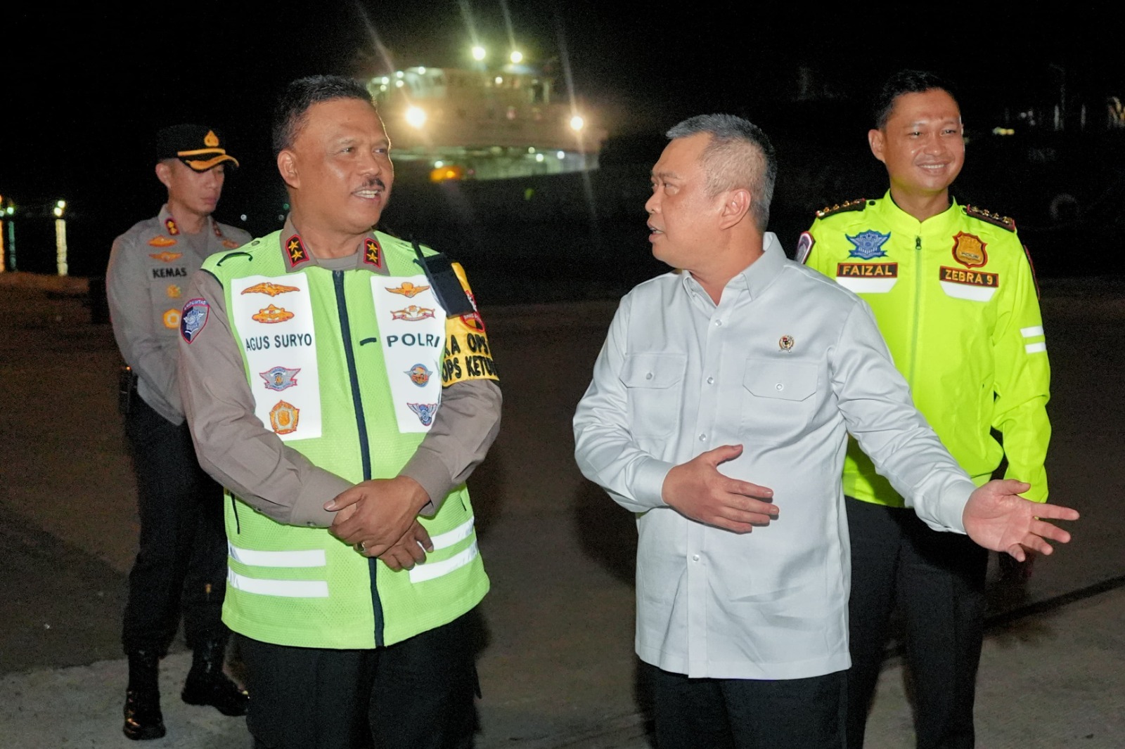 CILEGON – Kakorlantas Polri Irjen Pol Agus Suryonugroho bersama Menteri Perhubungan (Menhub) Dudy Purwagandhi meninjau kondisi Pelabuhan Merak, Banten, Minggu (23/3/2025).