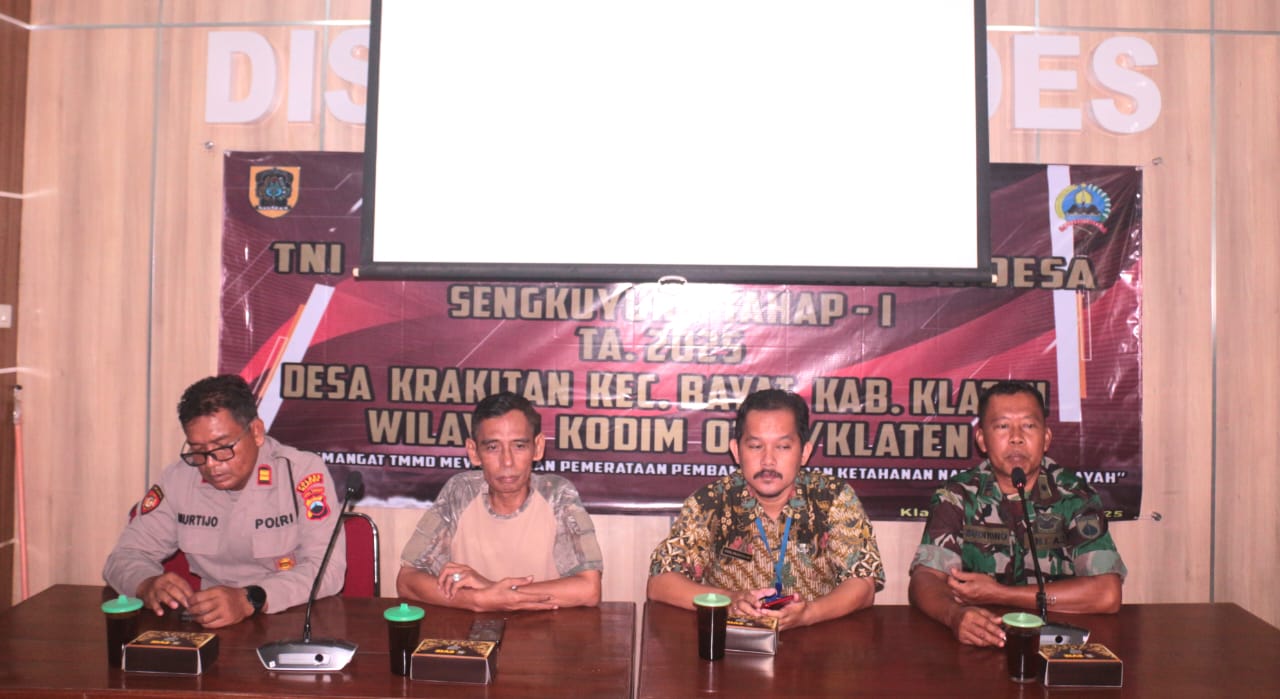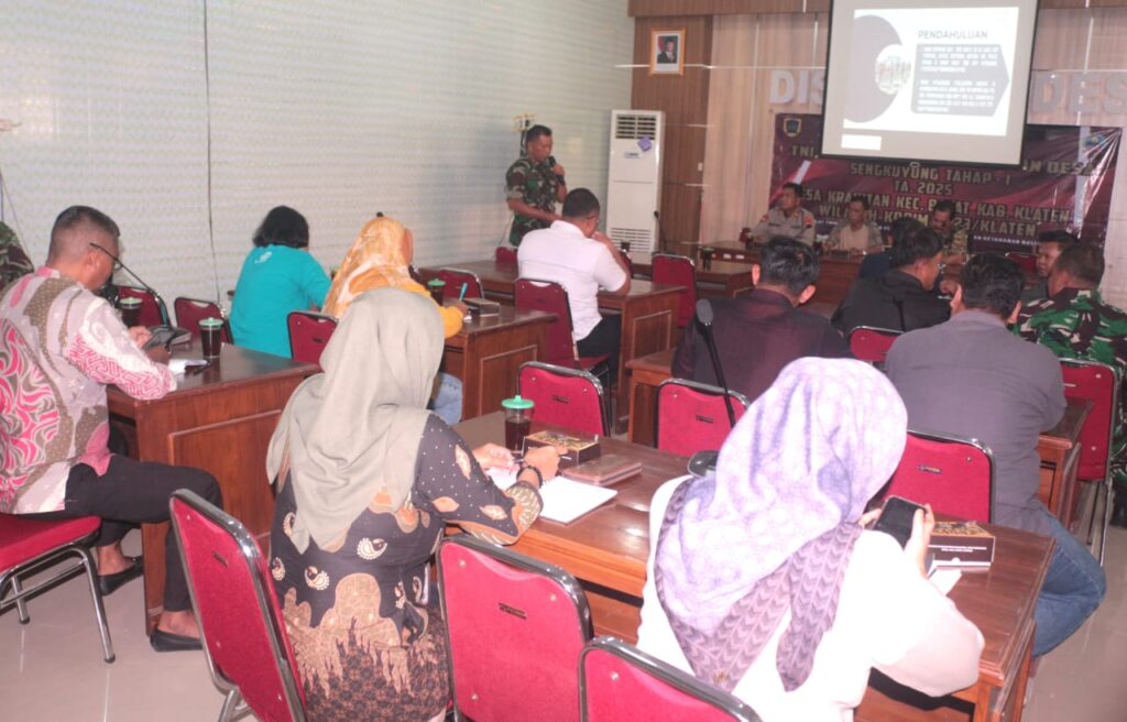 Klaten – Rapat Pleno TMMD (TNI Manunggal Membangun Desa) Sengkuyung Tahap I Tahun 2025 Desa Krakitan, Kecamatan Bayat, Kabupaten Klaten Digelar di kantor Dispermades Kabupaten Klaten, Jumat (07/02/2025). Program TMMD merupakan kegiatan yang bersifat gotong royong dan bertujuan untuk mempercepat pembangunan di desa-desa.