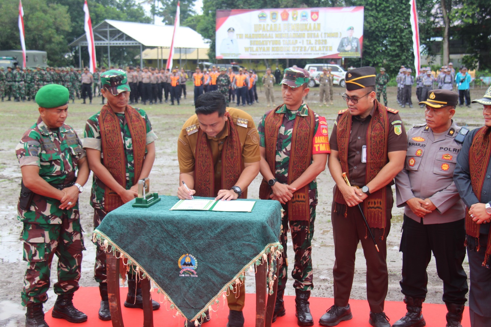 “Atas nama Pemerintah Kabupaten Klaten, saya mengucapkan selamat datang dan terima kasih yang setulus-tulusnya kepada jajaran TNI yang kembali menunjukkan komitmen dan pengabdian nyata kepada masyarakat Kabupaten Klaten melalui pelaksanaan TMMD Sengkuyung Tahap I,” Katanya