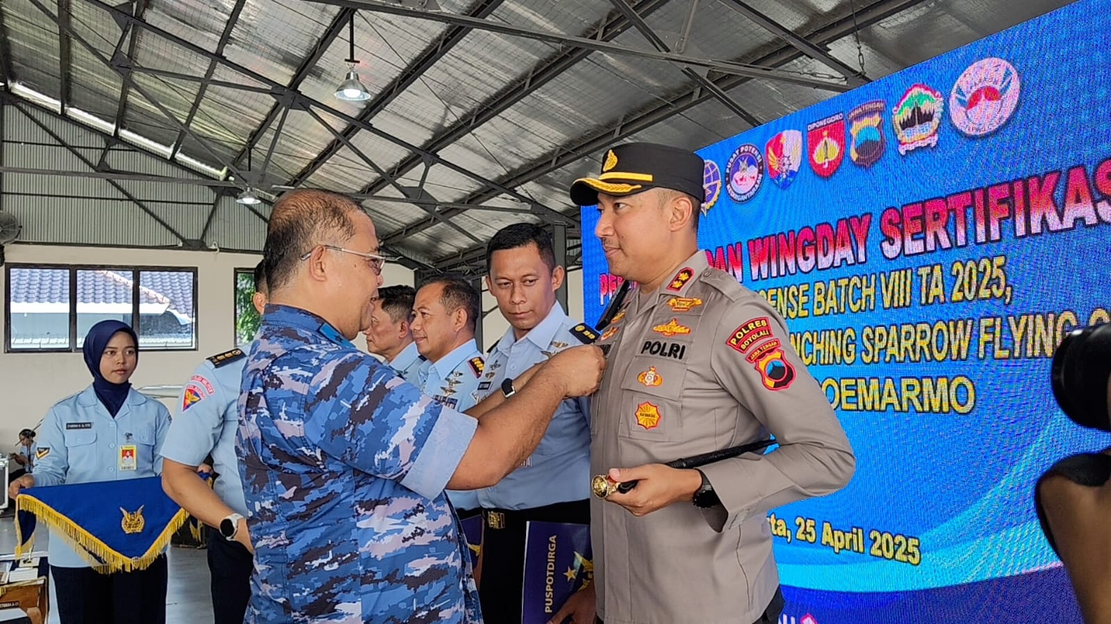 BOYOLALI – TNI Angkatan Udara melalui Dispotdirga resmi menyerahkan sertifikat dan Sport Pilot License (SPL) serta Wing Penerbang kepada 10 peserta pelatihan lisensi pilot, termasuk pejabat di lingkungan TNI AU dan Kapolres Boyolali. Penyerahan dilakukan dalam acara Wingday Sport Pilot License Batch 8 yang berlangsung di Hanggar Base Ops Lanud Adi Soemarmo, Boyolali, Jawa Tengah, Jumat (25/4/2025) pagi.