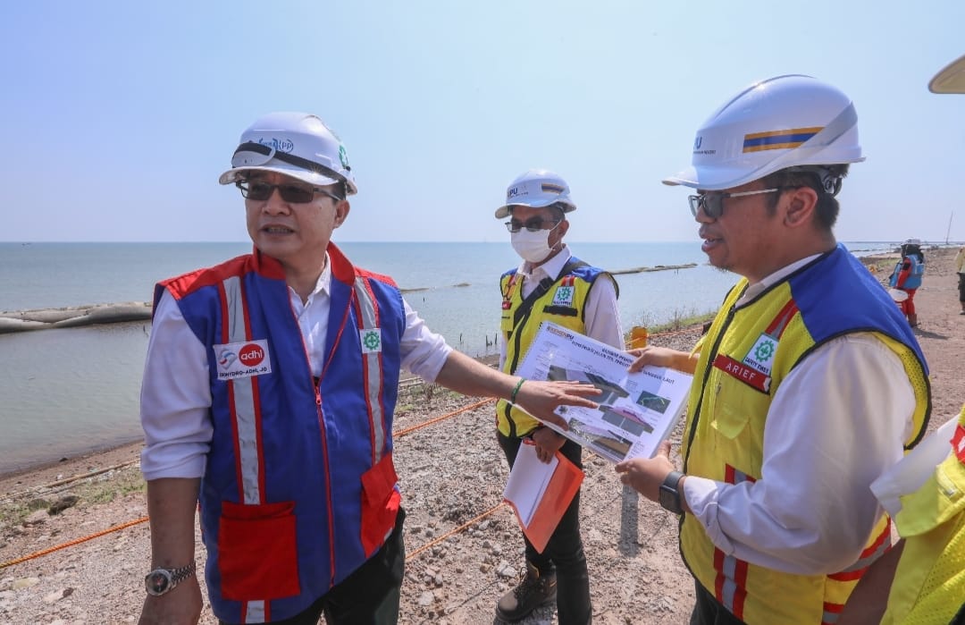 Pekerjaan fisik giant sea wall dan kolam retensi yang terintegrasi dengan Jalan Tol Semarang Demak Seksi 1 (Kaligawe-Sayung) ini dimaksudkan untuk penanggulangan banjir dan rob di sisi selatannya.