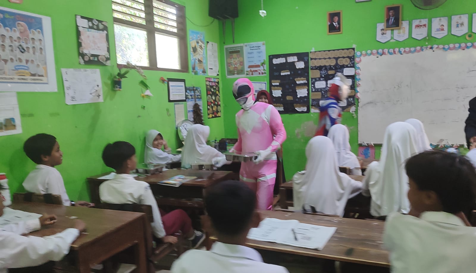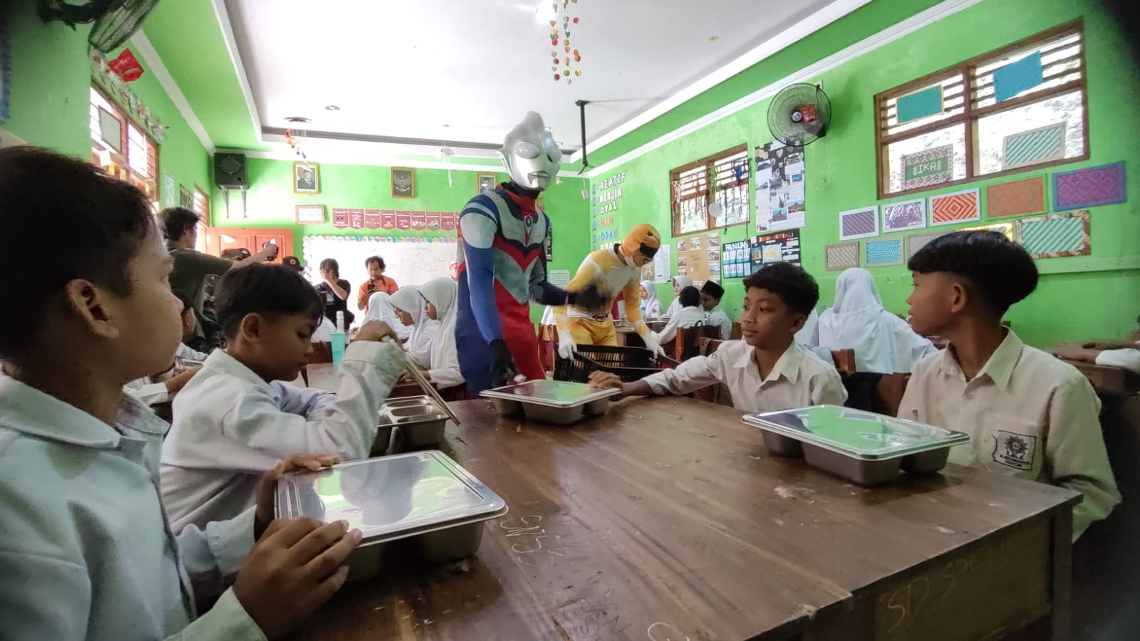 Aksi kocak para petugas itu mengundang gelak tawa siswa. Tidak hanya di halaman sekolah, petugas berkostum superhero juga mengantarkan MBG hingga ke setiap ruang kelas. Kehadiran mereka menjadi hiburan tersendiri bagi para siswa yang berebut tos dan salaman.