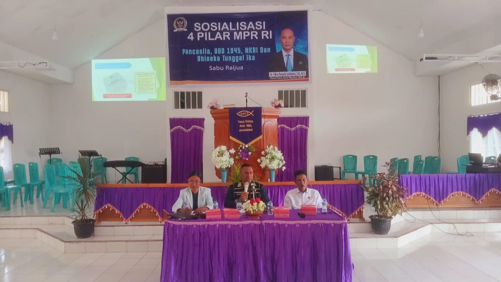 Demikian di sampaikan Salah Satu anggota DPR RI Viktor Bungtilu Laiskodat melalui sosialisasi empat pilar kebangsaan di kecamatan sabu timur desa bodae tepatnya di Gereja Imanuel melalui pembicara Kepala Kesatuan Bangsa dan Politik (Kesbangpol) Frits Mira Mengi.