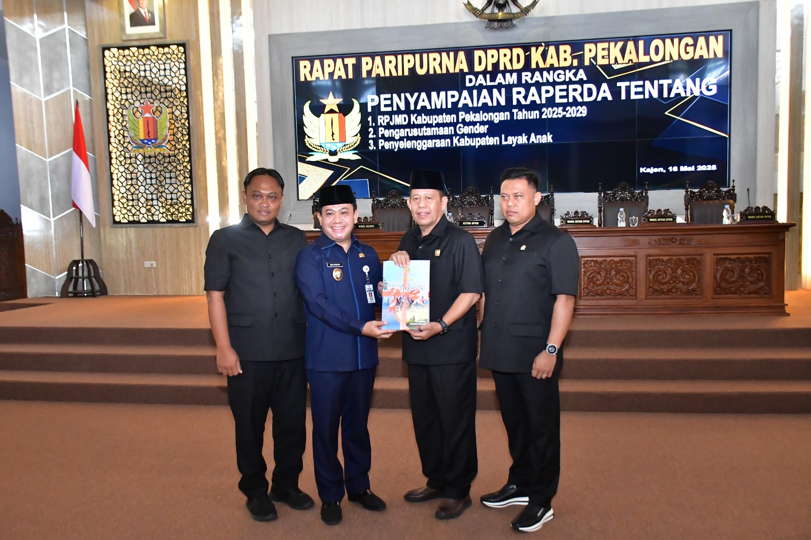 Dalam rapat yang berlangsung di Gedung DPRD Kabupaten Pekalongan tersebut, Wabup Sukirman menyampaikan tiga Raperda penting, yaitu Raperda tentang Rencana Pembangunan Jangka Menengah Daerah (RPJMD) Tahun 2025-2029, Raperda tentang Pengarusutamaan Gender, dan Raperda tentang Penyelenggaraan Kabupaten Layak Anak.